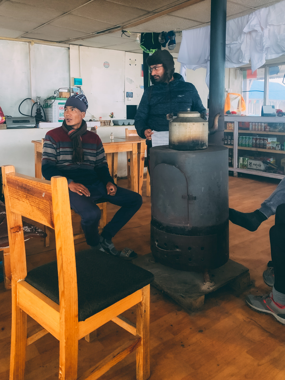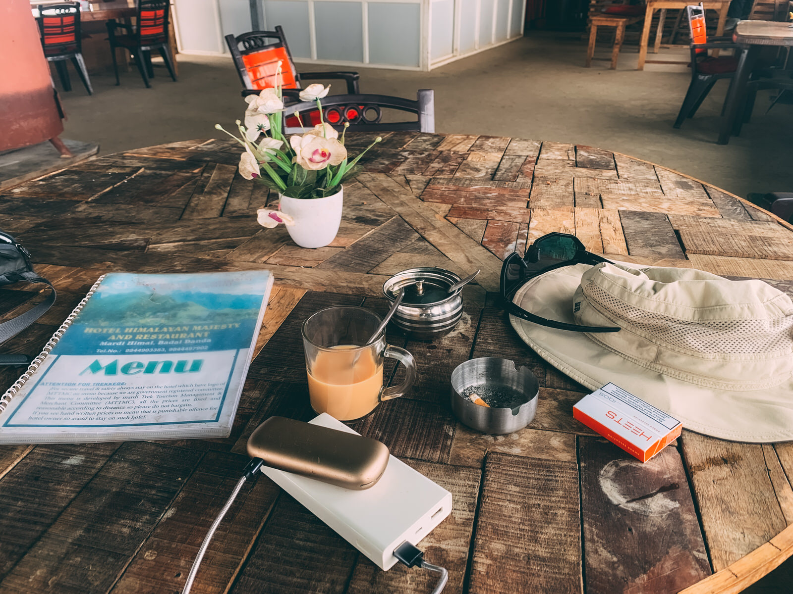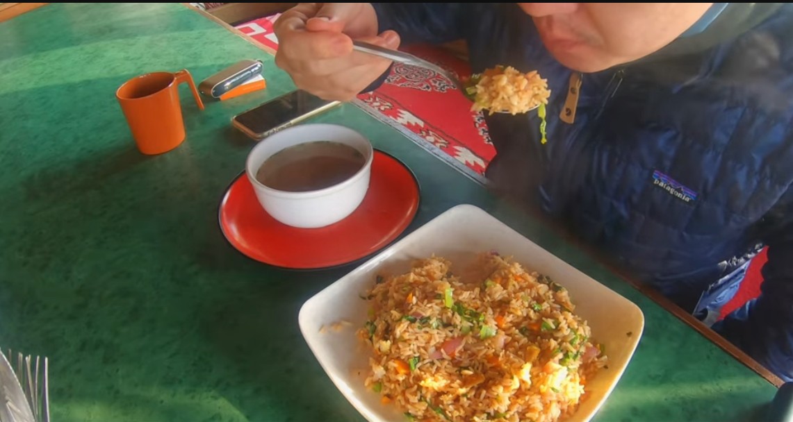 마차푸차레의 모습을 보고 난 뒤 뭔가 다시 동기부여가 된 나는 마음을 다잡고 오늘 약간은 힘들지 모를 일정을 준비한다. 오늘은 힘을 많이 내야 하니까 아침은 밥을 먹기로 한다. 그리고 미리 준비한 된장국 분말을 만들어 제대로 먹고 출발하려고 했다. 밥은 Mixed Fried Rice! 히말라야는 무조건 모든 음식을 Mixed로 먹어야 맛있다. 내 입맛에는 그렇다. 마차푸차레를 구경하며 커피를 마시는 동안 어린 종업원은 아침이 완성되었다며 나를 불렀다. 내심 "볶음밥이 맛있어 봐야 얼마나 맛있겠어?" 했지만 한입 먹는 순간 "미토차!!!! 미토차!!!(맛있다!!)"를 연발한다. 맛있다. 일단 Mixed니까 볶음밥 안에 들어가는 내용물이 매우 많다. 그리고 오므라이스 + 중국식 볶음밥? 같은 느낌이다. 달콤 새콤하고 재료 느낌 살아 있는 그런 맛이다. 여하간 아침밥을 매우 잘 먹었다. 그것도 아주 많이. 오르막이 많은 오늘 배를 빵빵하게 채워 뒤뚱거릴까 봐 겁이 날 정도였다.