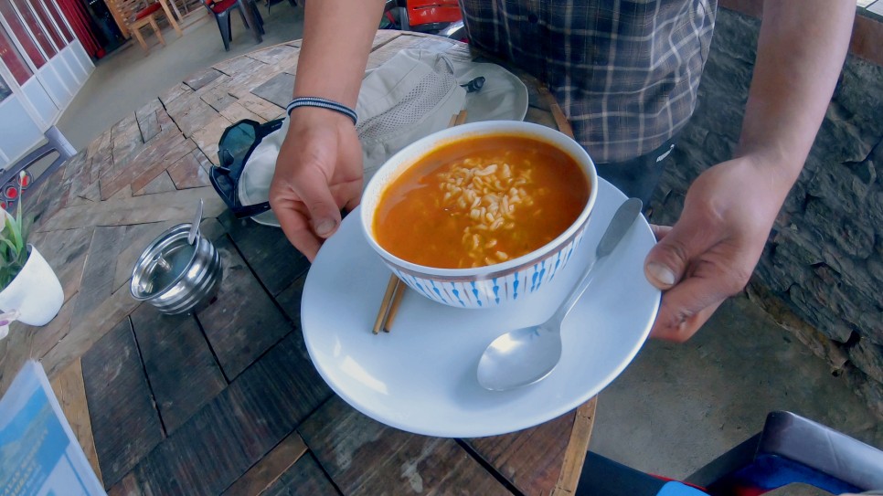 여하간 바달단다의 요리사에게 플레인 신라면을 주문했다. 신라면은 플레인을 시켜야 한다. 계란 라면이나 이런 걸 주문하면 요리사들이 물 조절을 잘 못해서 그냥 플레인을 시킨다. 바달단다의 신라면은 맛있다. 맵고 짜다!! 잘 만들었다. 거기에 흰쌀밥까지 말아서 매우 맛있게 먹었다.