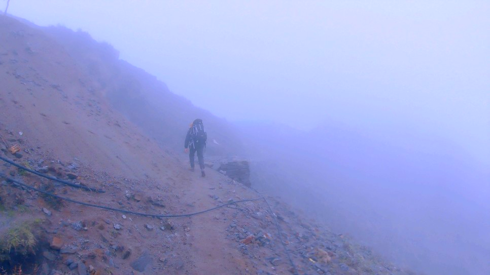 숲길로 시작해 낭떠러지를 지나 다시 우중산행.
