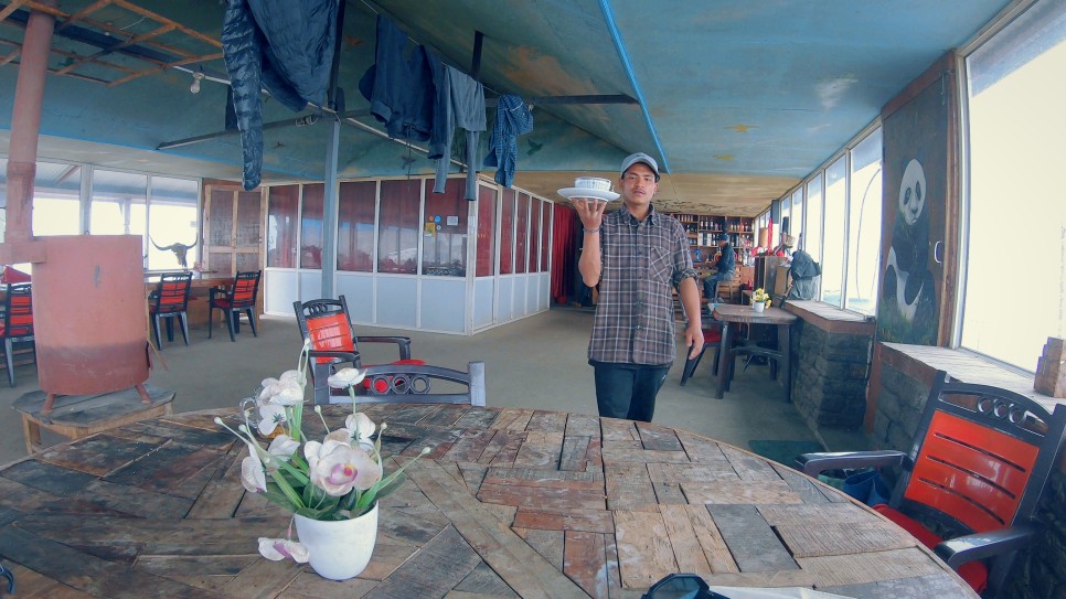 바달단다에 도착해 능선을 걷다 점심을 먹기로 한다. 조금 더 걸어도 될 것 같지만 이쯤에서 쉬어 주는 게 앞으로 계속될 오르막에 도움이 될 것 같다. 바달단다의 히말라야 마제스티 롯지에서 점심을 먹기로 한다. 주인(사우지)이 스타일리시하고 흥이 넘치는 아저씨다. 원래는 돈을 받고 하는 충전도 그냥 무료로 하라고 하고 한국 사람들을 좋아한다고 한다. 히말라야 마르디히말 코스의 많은 사우지(주인)들이 몽골? 계 사람들이 많다. 간단히 이야기하면 우리가 알고 있는 '셰르파'라는 말이 짐꾼이 아니라 티벳어로 '동쪽사람' 또는 '동쪽에서 온 사람'이라는 뜻이다. 그러니까 티베트 입장에서 보면 중국이나 한반도 뭐 그쪽에 온 사람이어서 엉덩이 몽고반점도 있고 그러하다고 한다. 그래서 롯지의 사우지 분들이 한국에서 온 사람들을 비교적 잘해준다. 이유가 네팔은 아리아인이 인구의 80% 정도이다. 인도와 유럽 중앙아시아 이란에 살던 민족이다. 그러다 보니 동쪽에서 온 셰르파 티베트몽골족은 생김새도 다르고 다수와 구별되는 것으로 이런저런 일들이 많았을 것이다. 그래서 생각보다 한국 사람들에게 거부감 없이 이야기하고 편하게 지넬 수 있다.